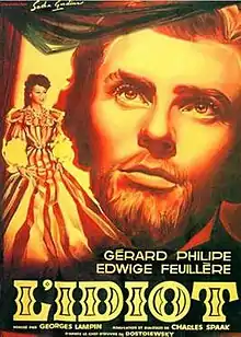 The Idiot (French: L'idiot) is a 1946 French drama film directed by Georges Lampin and starring Edwige Feuillère, Lucien Coëdel and Jean Debucourt.[2] It is an adaptation of Fyodor Dostoevsky's novel The Idiot. The film's sets were designed by Léon Barsacq, credited as the art director. It was shot at the Epinay and Neuilly Studios in Paris.