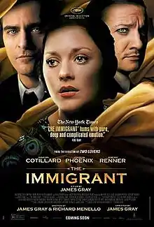 The Immigrant is a 2013 American drama film directed by James Gray, starring Marion Cotillard, Joaquin Phoenix, and Jeremy Renner. It was nominated for the Palme d'Or at the 2013 Cannes Film Festival.[3]