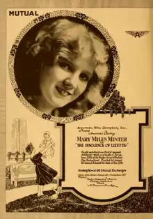 The Innocence of Lizette is a 1916 American silent comedy-drama film directed by James Kirkwood and starring Mary Miles Minter. It is one of approximately a dozen of Minter's films which are known to have survived.[1] The film was restored in the Netherlands in 2004 and was shown at several European film festivals along with A Dream or Two Ago, another Minter feature from 1916.[2][3]