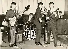 Eventually their touring itinerary came to include the entire Michigan area.[3] In 1965 the Jades' bassist Craig Clarke got job working at the Great Lakes recording studio, which was located in the Sparta Theater, an historic palace theater, which served the dual purpose of movie venue and recording studio.[3] It was owned by Dave Kalmback, who was the proprietor of Fenton Records and with its high ceilings, was known for having spacious acoustics, which can be heard on many Fenton recordings.[3] The studio also had an eight-track source tape machine, which was ahead of its time for the mid-1960s.[3] Clarke initially landed the job there to assist Kalmback in re-installing pipes to the theater's antique organ, but later began helping around the studio during sessions.[3] Clarkes assisted on the session for the Woolies' recording of Bo Diddley's "Who do You Love", which became a national top twenty hit.[3] Keyboardist Floyd Johnson worked at the theater selling popcorn.[3] In exchange for pay, Clarke made an arrangement with Kalmback to let the Jades use free studio time to record for the Fenton label.[1][3] In 1966 drummer Dan Preston left and was replaced by Bill Alexander, who initially lied to the members of the group claiming he had played drums when he had not.[1][3] He bought a drum set at Middleton Music, and joined the band. According to Alexander, "It's the greatest thing I ever did and would do it again."[1]