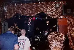 During the 80s and 90s, Bar La Terrasse/the Jailhouse was an important[2][3] site for a wide variety of acts that were part of punk, ska, industrial, metal, hip-hop and gothic musical scenes in Montreal, and the venue soon became a recurrent stop for international touring artists, with Domenic Castelli frequently acting as host as well as promoter for many of the concerts held at the venue. Castelli's first concert was a late 80s benefit for Montreal youth organisation Head & Hands featuring punk band the Ripcordz. But Domenic Castelli's first job was cleaning up after punk bands at Bar La Terrasse, before he began to book concerts there, and later at the Jailhouse.