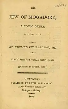 The Jew of Mogadore is an 1808 comic opera written by the British dramatist Richard Cumberland.