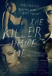 The Killer Inside Me is a 2010 American crime drama and an adaptation of the 1952 novel of the same name by Jim Thompson.[2] The film is directed by Michael Winterbottom and stars Casey Affleck, Jessica Alba, and Kate Hudson.[3] It is the second film adaptation of Thompson's novel, the first being 1976's The Killer Inside Me, directed by Burt Kennedy.