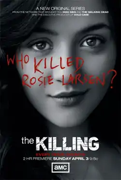 The first season of the AMC American crime drama television series The Killing premiered on April 3, 2011 and concluded on June 19, 2011. The series was developed and produced by Veena Sud and based on the Danish series, Forbrydelsen (The Crime). Set in Seattle, Washington, this season follows the investigation into the murder of local teenager Rosie Larsen, with each episode covering approximately 24 hours. The first season covers the first two weeks of the investigation and has three main storylines: the police investigation into Rosie's murder, the attempts of her family to deal with their grief, and the fluctuating electoral fortunes of a political campaign that becomes embroiled in the case. It stars Mireille Enos as homicide detective Sarah Linden and Joel Kinnaman as rookie detective Stephen Holder.