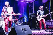 Mike Trebilcock is the band's primary songwriter, and he plays guitar and sings lead vocals. Gene Champagne plays the drums and Shelley Woods plays the bass and provides back-up vocals.