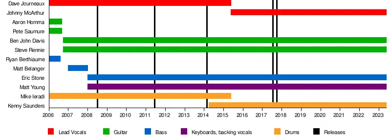 On May 15, 2015, David Journeaux posted on the band's Facebook page announcing his departure from the band. Three days later the band announced Johnny McArthur as their new vocalist and Kenny Saunders as their new drummer, replacing Mike Ieradi who left the band to join Protest the Hero.