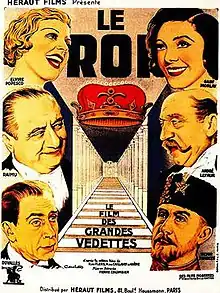 The King (French: Le roi) is a 1936 French comedy film directed by Pierre Colombier and starring Victor Francen, Raimu and Gaby Morlay.[1] King Jean IV of Cerdagne visits Paris to sign an important treaty where he becomes involved with an actress and a dishonest Senator.