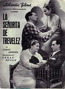 The Lady from Trévelez (Spanish:La señorita de Trévelez) is a 1936 Spanish drama film directed by Edgar Neville and starring Edmundo Barbero, Antoñita Colomé and Fernando Freyre de Andrade. The film is based on the play of the same name by Carlos Arniches.[1] It was remade in 1956 as Calle Mayor.