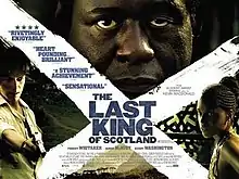 The Last King of Scotland is a 2006 historical drama film directed by Kevin Macdonald from a screenplay by Peter Morgan and Jeremy Brock. Based on Giles Foden's 1998 novel, its plot depicts the dictatorship of Ugandan President Idi Amin through the perspective of Nicholas Garrigan, a fictional Scottish doctor. The film stars Forest Whitaker, James McAvoy, Kerry Washington, Simon McBurney, and Gillian Anderson. The title of the film refers to Amin's claim of being the King of Scotland.