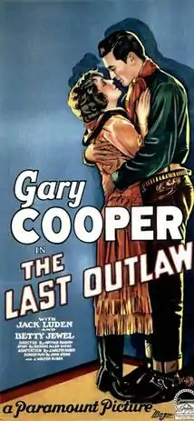 The Last Outlaw is a 1927 American silent Western film directed by Arthur Rosson and starring Gary Cooper, Jack Luden, and Betty Jewel.[1] Written by John Stone and J. Walter Rubin, based on a story by Richard Allen Gates, the film is about a frontiersman who falls in love with a pretty woman whose brother is accused of murder. He tries to prove the young man innocent of the charges, but when he is appointed sheriff, he is obliged to track down and arrest the boy.[1] A 16mm reduction positive print exists of this film.[2]