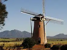 The Lily is a 16th-century Dutch design windmill of brick construction with 24.6-metre (81 ft) diameter sails.[6] It was built by Dutch born Pleun Hitzert between 1991 and 1997.[7][8] The Lily is a flour mill equipped with one set of millstones. It is the only working windmill of traditional construction on mainland Australia. Its uniqueness in the Australian landscape combined with the proximity of the Stirling Range has made The Lily a popular tourist landmark.[5][9][10][11][12]