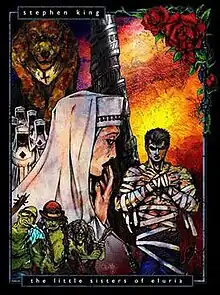 The Little Sisters of Eluria is a fantasy novella by American writer Stephen King. It was originally published in 1998 in the anthology Legends.[1] In 2002, it was included in King's collection Everything's Eventual.[2] In 2009, it was published together with the revised edition of The Dark Tower: The Gunslinger by Grant in a limited edition of 4,000 numbered copies of the Artist Edition signed by illustrator Michael Whelan and 1,250 numbered copies of the Deluxe Edition signed by Whelan and Stephen King. Both editions contain Whelan's additional new illustrations for The Gunslinger.[3]