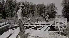 The New Deal was a constellation of economic stimulus policies and social programs enacted to lift America out of the Great Depression, and it touched every state, county, and city, as well as thousands of small towns and reached deep into rural areas with its conservation works. Yet, there is no national record of what the New Deal built,[6] only bits and pieces found in local and national archives, published sources, and on occasional plaques and markers. This represents an enormous gap in the historic record and a collective failure of memory. The Living New Deal's goal is to uncover every New Deal public works site in all fifty states and build a public archive of photographs, documents, films, and stories from this pivotal period.[7] As of early 2023, the project is nearing 18,000 documented New Deal sites.