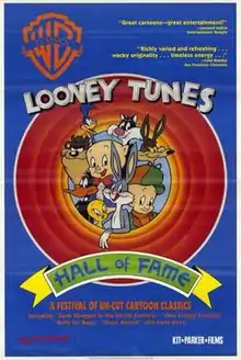 The Looney Tunes Hall of Fame is a 1991 feature film compilation of 15 classic animated short subjects from the Warner Bros. studio. The line-up of cartoons included in this anthology were A Wild Hare (1940), Birdy and the Beast (1944), Bugs Bunny Rides Again (1948), Rabbit Seasoning (1952), Feed the Kitty (1952), One Froggy Evening (1955), Duck Amuck (1953), Another Froggy Evening (1995), Fast and Furry-ous (1949), Ali Baba Bunny (1957), Knighty Knight Bugs (1958), High Diving Hare (1949), Bully for Bugs (1953) and Rabbit of Seville (1950). The Looney Tunes Hall of Fame offered audiences an opportunity to see the cartoons in a 35mm theatrical presentation.[4][5][6]