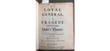 The Loyal General is a 1679 tragedy by the Irish writer Nahum Tate. It was first performed at the Dorset Garden Theatre by the Duke's Company. The prologue was written by John Dryden.