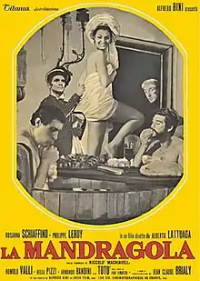 The Mandrake (Italian: La Mandragola; also called Mandragola: The Love Root) is a 1965 Franco-Italian co-production directed by Alberto Lattuada and based on the eponymous 16th-century play by Italian author Niccolò Machiavelli. It was nominated for the Academy Award for Best Costume Design.