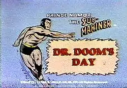 - The X-Men — The original lineup of the Angel, the Beast, Cyclops, Iceman, and Marvel Girl appeared in a Sub-Mariner episode, "Dr. Doom's Day / The Doomed Allegiance / Tug of Death". The story was an adaptation of Fantastic Four #6 (Sept. 1962) and Fantastic Four Annual #3 (1965) but since Grantray-Lawrence Animation did not own rights to the Fantastic Four, the producers substituted the X-Men — although referring to them instead as "Allies for Peace". However, the characters retained their original designs and individual names from the comics.