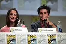 Kaya Scodelario and Dylan O'Brien at a panel for the film at San Diego Comic-Con International in July 2014