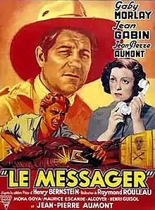 The Messenger (French: Le messager, or also known as Messenger Boy) is a 1937 French drama film directed by Raymond Rouleau and starring Gaby Morlay, Jean Gabin and Mona Goya.[1] It was based on a play by Henri Bernstein. Morlay reprised her role while Victor Francen, who had played the male lead on stage, was replaced by Gabin.