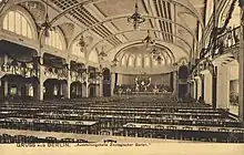 Menchen obtained the sole rights and film rights from Reinhardt and from Bote & Bock (Vollmöller's and Humperdinck's publishers),[22][23] and had "gone to very considerable expense" (£20,000[3] or $50,000)[1] "in preparing a film of the play, which he intended to produce with Mr. Walter Hyman"[n 2] at the Covent Garden Opera House on 21 December."[22] Another name (possibly a financial backer) appearing in connection with the production is that of A. D. Rosenthal.[24] The 'Lyricscope play' was designed to be a partial re-creation (on a slightly smaller scale) of Reinhardt's massive theatrical spectacle which had drawn such large crowds to Olympia the previous year.