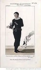 Harpagon's servants with minor roles include Brindavoine,[14] La Merluche,[14] and Mistress Claude, a cleaning woman with no lines.[15] In the last act appears a Magistrate[lower-alpha 1] who investigates the theft of the cash-box[16] with his Clerk, who has no spoken part.[17]