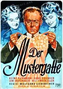 The Model Husband (German: Der Mustergatte) is a 1937 German comedy film directed by Wolfgang Liebeneiner and starring Heinz Rühmann, Leny Marenbach, and Hans Söhnker.[1] It is based on a 1915 American play Fair and Warmer by Avery Hopwood. The film was screened at the Venice Film Festival where it won an award. In the 1950s, it was remade twice: a 1956 West German film The Model Husband and a 1959 Swiss The Model Husband.