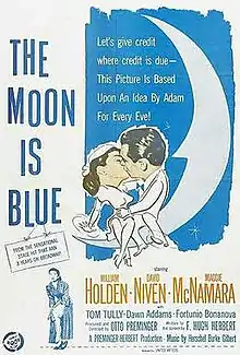 The Moon Is Blue is a 1953 American romantic comedy film produced and directed by Otto Preminger and starring William Holden, David Niven, and Maggie McNamara. Written by F. Hugh Herbert and based on his 1951 play of the same title, the film is about a young woman who meets an architect on the observation deck of the Empire State Building and quickly turns his life upside down. Herbert's play had also been a huge success in Germany, and Preminger decided to simultaneously film in English and German, using the same sets but different casts. The German-language film version is Die Jungfrau auf dem Dach.