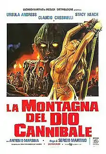 The Mountain of the Cannibal God (Italian title: La montagna del dio cannibale) is a 1978 Italian horror film starring Ursula Andress and Stacy Keach, with English dialogue, that was filmed in Sri Lanka. The film was also widely released in the U.S. in 1979 as Slave of the Cannibal God from New Line Cinema and released in the U.K. as Prisoner of the Cannibal God, with a poster designed by Sam Peffer.[1] The film was banned in the U.K. until 2001 for its graphic violence and considered a "video nasty."[2]