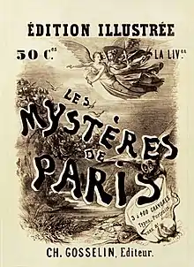 The Mysteries of Paris (French: Les Mystères de Paris) is a novel by the French writer Eugène Sue. It was published serially in 90 parts in Journal des débats from 19 June 1842 until 15 October 1843, making it one of the first serial novels published in France.[1] It was an instant success and singlehandedly increased the circulation of Journal des débats. It founded the "city mysteries" genre, spawning many imitations.