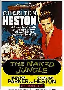 The Naked Jungle is a 1954 American adventure film directed by Byron Haskin, and starring Charlton Heston and Eleanor Parker. Telling the story of an attack of army ants on a Brazilian cocoa plantation, it was based on the 1937 short story "Leiningen Versus the Ants" by Carl Stephenson.[2]