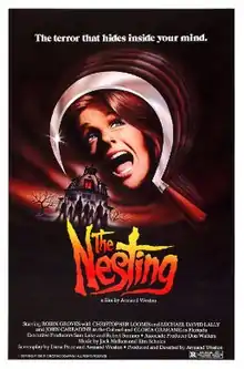 The Nesting (also known as Phobia and Massacre Mansion)[2] is a 1981 American supernatural horror film directed and co-written by Armand Weston, and starring Robin Groves, Michael Lally, John Carradine and Gloria Grahame in her final film role. Its plot follows an agoraphobic novelist who rents a rural mansion that she comes to find is haunted.