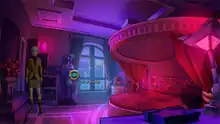 The Next Big Thing is a graphic adventure game set in a 2D environment and controlled with a point-and-click interface.[1] Progression through the game is linear;[1] the story is segmented into discrete scenes, each of which begins with a list of the player's goals at that moment.[3] The player advances the plot by exploring the game world, speaking with non-player characters via dialogue trees, collecting items and solving puzzles.[1][4] Most puzzles require the player to use or combine items, although minigames and conversation-based puzzles appear as well.[1] The Next Big Thing features three difficulty modes: the lowest offers a hint system and allows the player to highlight all interactive hotspots on the screen; the middle difficulty omits the hint system; and the highest omits both.[5]