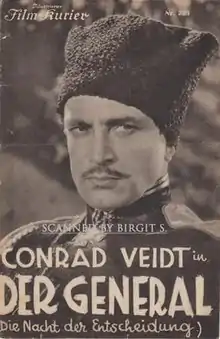 The Night of Decision (German: Die Nacht der Entscheidung) is a 1931 American drama film directed by Dimitri Buchowetzki and starring Conrad Veidt, Olga Chekhova, and Peter Voß.[1] Based on the 1928 play The General by Lajos Zilahy, it is also known by the alternative title of Der General.