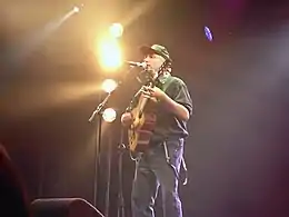 The Tell Us the Truth Tour was supported by unions, environmental and media reform groups including Common Cause, Free Press and A.F.L.-C.I.O. with the ultimate goal of "informing music fans, and exposing and challenging the failures of the major media outlets in the United States."[5] His Nightwatchman persona has been compared to Woody Guthrie,[2] Bruce Springsteen and Bob Dylan.[3] He initially had no plans to record,[6] but later recorded the song "No One Left" for Songs and Artists that Inspired Fahrenheit 9/11. At the Festival of Bonnaroo in 2007, The Nightwatchman performed Rage Against the Machine song "Guerrilla Radio" to protest George W. Bush.