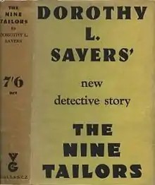 The Nine Tailors is a 1934 mystery novel by the British writer Dorothy L. Sayers, her ninth featuring Lord Peter Wimsey. The story is set in the Lincolnshire Fens, and revolves around a group of bell-ringers at the local parish church. The book has been described as Sayers' finest literary achievement, although not all critics were convinced by the mode of death, nor by the amount of technical campanology detail included.