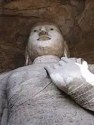 Many art objects were produced in Northern China during the time of the Northern Celestial Masters. These objects were closely modeled on Buddhist designs. The image of the god (usually Laozi), would be carved on the front side of a stone stele, with inscriptions on the back or side of the carving. The inscriptions were usually prayers to the dead, a wish for the happiness of family members or wishes for political peace. The iconography and contents of the inscriptions show that a close relationship between Daoism and Buddhism existed in the Northern Wei state.[23] This relationship is especially evident in some four-sided stelae that had carvings of both Laozi on two sides and the Buddha on the other two.[24]