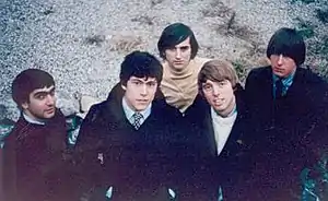 Co-founder Jim DeStout (lead guitar) began his rock career musically as a member of the Regions, a teen band popular on the local club circuit in Rhode Island. When the British Invasion swept across the United States, the Regions adopted their counterparts' style, a pattern which would continue when the Others formed. DeStout departed for Rhode Island University in late 1964, where he met colleagues Pete Shepley (lead vocals) and Mike Brand (rhythm guitar).[1] DeStout, along with his friend Mike Patalano (drums) arranged a jam session with Shepley and Brand, before recruiting their fifth member, John Costa (bass guitar, vocals), and practicing their three-part vocal harmonies.[2] DeStout reflected on the Others' first performance: "The first time we performed publicly was at ‘Rhody Night,’ a talent show at the college. We sang ‘When I Get Home’ by The Beatles", and at that point "Jim officially dropped out of the Regions and things with The Others began to snowball".[3]