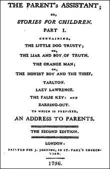 The Parent's Assistant is the first collection of children's stories by Maria Edgeworth, published by Joseph Johnson in 1796.