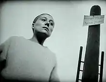 Dreyer often shot the priests and Joan's other interrogators in high contrast lighting, but then shot Joan in soft, even lighting.[17] Rudolph Maté's high-contrast cinematography also allowed unappealing details in people's faces, such as warts and lumps, to be fully visible. In addition, Dreyer employed many low-angle shots of Joan's persecutors so that they would appear more monstrous and intimidating; in the effort to do this, several holes were dug on the set for the camera to film from the appropriate angle, causing the crew to nickname him "Carl Gruyére".[6] Dreyer also shot the film "from the first to the last scene...in the right order."[16]