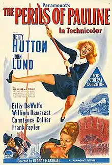 The Perils of Pauline is a 1947 American Technicolor film directed by George Marshall and released by Paramount Pictures. The film is a fictionalized Hollywood account of silent film star Pearl White's rise to fame, starring Betty Hutton as White.