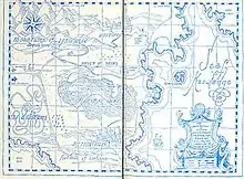 The Phantom Tollbooth contains allusions to many works, including those loved by Juster in his own upbringing. Some of Juster's favorite books as a child, including The Wind in the Willows, had endpaper maps; Juster insisted on one, over Feiffer's opposition, going so far as to sketch one and require that his collaborator reproduce it in his own style.[33] Juster was also inspired by his father Samuel's love of puns, with which the book is more than sprinkled. In his childhood, Juster spent much time listening to the radio.[9] According to Juster, the need to envision the action when listening to radio serials helped inspire The Phantom Tollbooth, as well as yielding the character of Tock, based on sidekick Jim Fairfield from Jack Armstrong, the All-American Boy. Jim gave Tock his wisdom, courage, and adventurous spirit.[9] As a child, Juster had synesthesia, and could only do arithmetic by making associations between numbers and colors. He remembered that the condition affected word associations. "One of the things I always did was think literally when I heard words. On the Lone Ranger [radio serial] they would say, 'Here come the Injuns!' and I always had an image of engines, of train engines."[6]