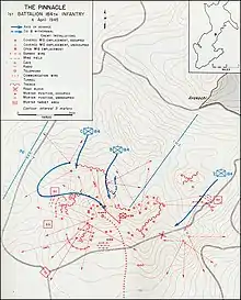 The Pinnacle was the name given to a 30-foot-tall (9.1 m) spire, atop a 450-foot-tall (140 m) ridge of coral approximately 1,000 yards (910 m) southwest of Arakachi, Okinawa.[1]: 107 Heavily fortified by the 62nd Division, this outpost to Japan's main defenses at Shuri held up the U.S. 7th Infantry Division on 5–6 April 1945 with accurate and well-concealed machine gun, mortar and artillery fire.