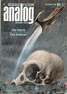 "The Pirate" is a science fiction short story by American writer Poul Anderson that first appeared in the October 1968 issue of Analog. "The Pirate" was a prequel to the earlier Psychotechnic League novel Star Ways (later retitled The Peregrine), and was the last story in the Psychotechnic series to be published. The story was included in the 1975 collection Homeward and Beyond and the 1982 collection Starship, and the timeline from the latter collection places the story in the year 3115.