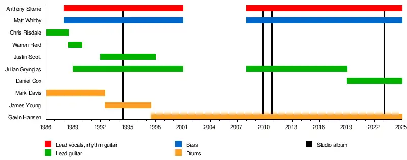 - Anthony "Skenie" Skene – vocals, rhythm guitar (1988–2000, 2008–present)