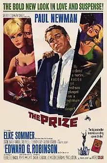 The Prize is a 1963 American spy film and romantic comedy starring Paul Newman, Elke Sommer, and Edward G. Robinson.[2] It was directed by Mark Robson, produced by Pandro S. Berman and adapted for the screen by Ernest Lehman from the novel The Prize by Irving Wallace. It also features an early score by prolific composer Jerry Goldsmith.[3]
