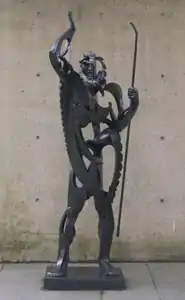 The Prophet (4/7) is a public artwork by Spanish artist Pablo Gargallo, located in the Alan and Janet Wurtzburger Sculpture Garden at The Baltimore Museum of Art, which is in Baltimore, MD, United States. This bronze sculpture was created in 1933, using the sand casting method, and depicts an abstract male figure with his right arm bent towards the sky and holding a staff in his left hand.