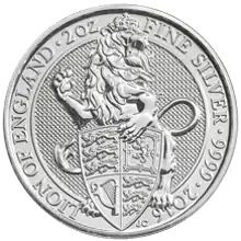 - "Buy The Queen's Beasts 2016 – The Lion – 2 oz Silver Bullion Coin". www.royalmintbullion.com. Retrieved 14 August 2016.