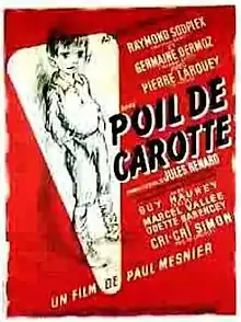 The Red Head (French: Poil de carotte) is a 1952 French drama film directed by Paul Mesnier and starring Raymond Souplex, Germaine Dermoz and Pierre Larquey. It is based on the novel Poil de carotte by Jules Renard which had previously adapted into films twice by Julien Duvivier before the Second World War.[1]