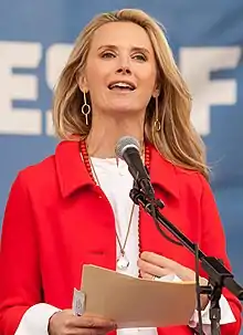 She co-founded The Representation Project, an organization which works to end gender stereotypes.[16] The Representation Project's board members include Jan Yanehiro, Nathan Ballard, Susie McCormick, and Maureen Pelton.[17][18][19] In 2021, The Sacramento Bee revealed that from 2011 to 2018, Siebel Newsom earned $2.3 million from her film work through her nonprofit organization, which had received $800,000 in donations from companies with business before California's government as her husband Gavin Newsom's political career ascended, and continued to draw her salary after he became governor.[20] While the practice is allowed by California law, outside ethics experts expressed concerns about conflicts of interest; a spokesperson for The Representation Project said Siebel Newsom had not overseen fundraising since 2015.[20]