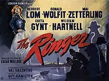 The Ringer is a 1952 British mystery film directed by Guy Hamilton and starring Herbert Lom, Donald Wolfit, Mai Zetterling, Greta Gynt, William Hartnell, and Denholm Elliott.[1] It was Hamilton's directorial debut and the third English-language sound version of Edgar Wallace's 1929 play.[2][3][4] It was shot at Shepperton Studios near London. The film's sets were designed by the art director William Hutchinson.